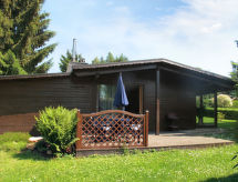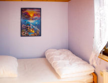 4-rums-hus 68 m2. Mysigt inrett: vardagsrum, takhöjd 210 cm med braskamin, sat-TV, radio och CD. Utgång till terrassen. 1 rum med 1 fransk säng (160 cm, längd 200 cm). 1 litet rum med 1 x 2 våningssängar. 1 litet rum med 1 säng. Öppet kök (ugn, diskmaskin, 4 kokplattor - glaskeramikhäll, brödrost, mikrovågsugn, frys, elektrisk kaffemaskin) med matbord. Dusch/toalett. Oljeuppvärmning. Parkettgolv. Till förfogande: ved (extra). Notera: brandvarnare, brandsläckare.- Utrustning