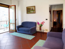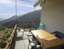 3-rums-lägenhet 50 m2 på 1. våningen, sydvästläge. Enkelt och praktiskt inredd: vardags-/matrum med öppen spis, matbord och sat-TV. Utgång till balkongen. 1 dubbelrum. Utgång till balkongen. 1 rum med 1 x 2 våningssängar. Öppet kök (4 kokplattor, ugn, diskmaskin, mikrovågsugn, frys, elektrisk kaffemaskin). Dusch/toalett. Gasuppvärmning. Uppvärmning endast tillgängligt från 01.10. till 15.05. Parkettgolv. 2 balkonger, terrass. Terrassmöbler, utegrill (flyttbar), vilstolar (2). Panoramautsikt på dalen. Till förfogande: tvättmaskin, barnsäng för barn under 2 år. Notera: rökfri lägenhet. CIR:10300500003- Utrustning