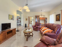 6-rums-hus 150 m2 med 2 våningar. Vardags-/matrum 60 m2 med öppen spis och sat-TV (flatscreen TV), DVD. Utgång till terrassen. 1 rum med 1 dubbelsäng (2 x 90 cm, längd 200 cm), luftkonditionering. Öppet kök (4 kokplattor, ugn, diskmaskin, mikrovågsugn, frys). Utgång till terrassen. Dusch/toalett. Övre våning: (utetrappa) vardags-/matrum med sat-TV (flatscreen TV). 2 rum, till varje rum hör, 1 dubbelsäng (2 x 80 cm, längd 200 cm), luftkonditionering. 1 rum med 1 dubbelsäng (2 x 80 cm, längd 200 cm), badkar/toalett, bubbelbad, sat-TV och luftkonditionering. Utgång till terrassen. Öppet kök (4 kokplattor, ugn, diskmaskin, mikrovågsugn, frys). Dusch/toalett. Terrass 30 m2, täckt, 2 terrasser 12 m2. Terrassmöbler, vilstolar. Vidsträckt utsikt på havet. Till förfogande: hög barnstol, barnsäng (extra). Internet (Trådlös LAN [WLAN] , gratis). 1 litet husdjur/hund tillåtet.- Kännetecken för boendet