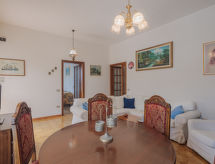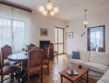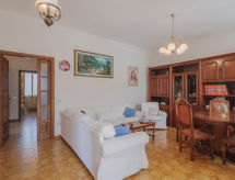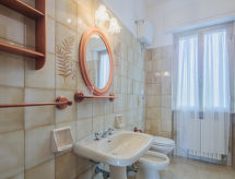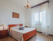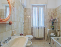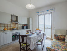 4-rums-lägenhet 95 m2, på bottenvåningen. Praktiskt inredd: stort vardags-/matrum med matbord och sat-TV. 1 rum med 1 fransk säng (160 cm). 1 rum med 1 dubbelsäng. 1 litet rum med 2 sängar (80 cm). Stort kök (ugn, diskmaskin, 4 gasflammor, brödrost, mikrovågsugn, frys, elektrisk kaffemaskin) med matbord. Utgång till balkongen. Badkar/toalett, sep. Toalett. Gasuppvärmning (extra). Liten balkong, berså. Terrassmöbler, vilstolar (2), förråd. Härlig vidsträckt utsikt på havet och Riviera della Versilia. Till förfogande: tvättmaskin, strykjärn, hög barnstol, barnsäng för barn under 2 år, hårtork. Internet (Trådlös LAN [WLAN] , gratis). Notera: rökfri lägenhet. Max 1 husdjur/hund tillåtet. Privat entré, privat entré.- Utrustning