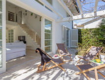 6-rums-hus 200 m2 med 2 våningar. Fullständigt renoverat, modernt och stiligt inrett: stort vardagsrum 30 m2 med skjutdörr, fönster mot gården med TV, CD, stereoanläggning och luftkonditionering. Utgång till trädgården, till trädgårdssittplatsen. 1 dubbelrum med dusch/bidé/toalett och luftkonditionering. Utgång till trädgården. 1 dubbelrum med luftkonditionering. Utgång till trädgården. Stort kök 20 m2 (5 kokplattor, ugn, diskmaskin, elektrisk kaffemaskin) med matbord. Utgång till trädgården, till loggian. Dusch/bidé/toalett. Gasuppvärmning. Övre våning: 1 dubbelrum med snedtak, takhöjd 180 - 300 cm med takfönster med dusch/bidé/toalett, dubbelt handfat och luftkonditionering. 1 dubbelrum med snedtak, takhöjd 180 - 250 cm med badkar/bidé/toalett, dubbelt handfat och luftkonditionering. Öppet galleri. Naturstensgolv. Trädgårdssittplats, trädgård 100 m2. Balkongmöbler, vilstolar. Till förfogande: tvättmaskin. Internet (Trådlös LAN [WLAN] , gratis). Parkeringsplats (inhägnad, 4 Bilar). Lämpligt för barnfamiljer. På bottenvåningen finns ett stort ljust vardagsrum med bekväm sittgrupp, ett modernt kök med ett stort matbord samt dörrar som öppnas ut till trädgården och 2 dubbelrum med eget badrum. Den första våningen har ett öppet galleri och 2 dubbelrum med eget badrum med dubbla duschar och ett badkar. Hela huset har luftkonditionering.- Aktiviteter i närheten