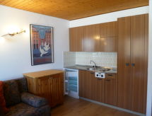 Semesteranläggning. I orten. För gemensamt bruk: inomhus pool (15 x 8 m, 80 - 220 cm djup, tillgång säsongsbunden: 04.Jul. - 30.Aug. och 20.Dec. - 11.Apr. poolen är öppen under följande tider: mellan kl 10:00-12:00 och 15:00-19:00). I huset: skidförråd, centralvärme. Parkering (extra), gemensamt garage (extra). Livsmedelsaffär, restaurang 100 m. Vandringsleder från huset 1 m, skidlift 100 m. Notera: fordon rekommenderas. Nyckelöverlämningen sker på kontoret Imalp i Thyon.Interior