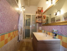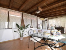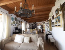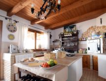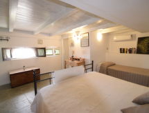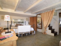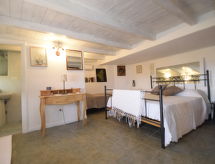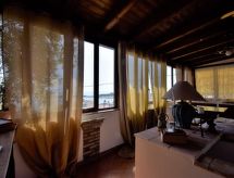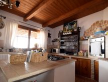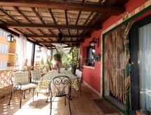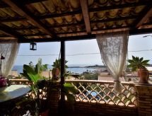 5-rums-lägenhet 150 m2 med 2 våningar på 1. våningen. Komfortabelt och smakfullt inredd: stort vardags-/matrum med TV (flatscreen TV), luftkonditionering. Utgång till terrassen. 1 dubbelrum med snedtak med takfönster med dusch/bidé/toalett och TV (flatscreen TV), luftkonditionering. 1 dubbelrum med dusch/toalett och TV (flatscreen TV), luftkonditionering. Utgång till terrassen. Vardags-/matrum med köksblock. Kokvrå (5 kokplattor, ugn, diskmaskin, brödrost, vattenkokare, mikrovågsugn, frys, elektrisk kaffemaskin). Uppvärmning, varmluftsuppvärmning. Uppvärmning endast tillgängligt från 01.12. till 31.03. Nedre våning: 1 dubbelrum med dusch/toalett och luftkonditionering. Stor terrass 55 m2, täckt. Terrassmöbler. Vacker panoramautsikt på havet och landskapet. Till förfogande: tvättmaskin, strykjärn, hög barnstol, barnsäng för barn under 2 år, hårtork. Internet (Trådlös LAN [WLAN] , gratis).- Utrustning