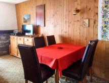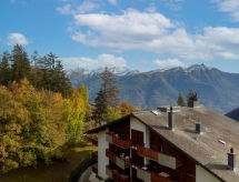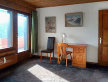 "Domino A 55", 2-rums-lägenhet på 4. våningen, sydläge. Komfortabelt och smakfullt inredd: vardags-/matrum med 1 bäddsoffa för 2 personer och kabel-TV. Utgång till balkongen, mot söder. 1 rum med 1 dubbelsäng (2 x 90 cm, längd 200 cm). Utgång till balkongen, mot söder. Kokvrå (ugn, vattenkokare, mikrovågsugn, elektrisk kaffemaskin, raclettegrill, fondueset (ost )). Badkar/toalett. Balkong. Balkongmöbler. Mycket vacker utsikt på bergen. Till förfogande: hårtork. Internet (Trådlös LAN [WLAN] , gratis). Garage nr A 55 i 30 m. Notera: rökfri lägenhet.- Utrustning