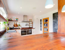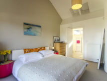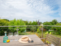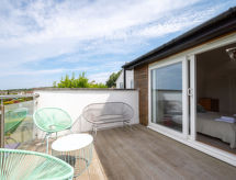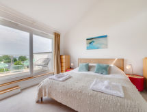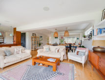 5-rums-hus med 2 våningar. Rymlig och ljus, komfortabelt och smakfullt inrett: öppet vardagsrum med TV, flatscreen TV och DVD. 1 rum med 2 sängar. Öppet kök (4 kokplattor, ugn, mikrovågsugn, frys) med matbord. Dusch/toalett. Övre våning: 1 dubbelrum med 1 dubbelsäng och dusch/toalett. 1 dubbelrum med 1 dubbelsäng och TV (flatscreen TV). Utgång till terrassen. 1 rum med 2 sängar. Badkar/dusch/toalett. Uppvärmning. Terrassmöbler. Vacker utsikt på havet. Till förfogande: tvättmaskin, torktumlare. Internet (Trådlös LAN [WLAN] , gratis). Notera: rökfritt hus.- Utrustning