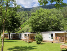 3-rums-mobile home 24 m2. Objekt passande för 4 vuxna. Komfortabelt och modernt: 1 dubbelrum med 1 fransk säng (160 cm, längd 200 cm). 1 rum med 2 sängar (80 cm, längd 200 cm). Kombinerat kök och vardagsrum (4 Induktionshäll, mikrovågsugn, elektrisk kaffemaskin, raclettegrill) med 1 sovmöjliget (130 cm, längd 190 cm), matbord, sat-TV och luftkonditionering. Utgång till terrassen. Dusch, sep. Toalett. Eluppvärmning, luftkonditionering. Terrass 9 m2, täckt. Terrassmöbler, elektrisk grill (flyttbar), vilstolar. Utsikt på bergen och landskapet. Till förfogande: Internet (Trådlös LAN [WLAN] , gratis). Notera: rökfri lägenhet. Egen båtplats (extra). 1 husdjur/hund tillåtet. Brandvarnare. Vid bokning med ett mindre antal personer än det maximala är inte alla husenheter tillgängliga.- Utrustning