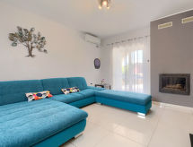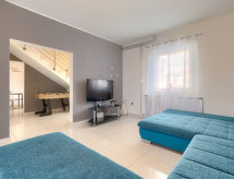 Radhus "Duje & Mare (Mdn184)", med 2 våningar. 50 m från centrumet av Ližnjan, 3 km från centrumet av Medulin, 11 km från centrumet av Pula, 1.7 km från havet, 1.7 km från stranden. För privat bruk: tomt 400 m2 (inhägnad) med gräsmatta och träd, pool kantig (8 x 4 m, 135 - 135 cm djup, tillgång säsongsbunden: 01.Maj. - 01.Okt.). Utedusch, terrass (15 m2), trädgårdsmöbler (rutschbana, gunga). I huset: internetanslutning, fotbollsspel, tvättmaskin, torktumlare. Parkering (för 2 bilar) på tomten, privat garage. Affär 50 m, restaurang 3 km, strand vid klippor 1.7 km. Lokal försäljning av lantgårdsprodukter.Interior
