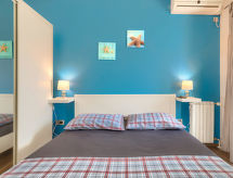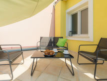 4-rums-radhus 110 m2 med 2 våningar. Vardags-/matrum med 1 bäddsoffa (120 cm), 1 hopfällbar säng och öppen spis (endast för dekoration), sat-TV och luftkonditionering. Utgång till terrassen. Öppet kök (1 kokplatta, ugn, diskmaskin, 3 gasflammor, brödrost, vattenkokare, mikrovågsugn, frys, elektrisk kaffemaskin). Badkar/toalett. Övre våning: 1 rum med 1 fransk säng (160 cm, längd 200 cm), sat-TV och luftkonditionering. 1 rum med 1 fransk säng (160 cm, längd 200 cm), sat-TV och luftkonditionering. Utgång till balkongen. 1 rum med 1 fransk säng (180 cm, längd 200 cm), sat-TV och luftkonditionering. Utgång till balkongen. Dusch/toalett. Gasuppvärmning. Balkong, terrass täckt. Terrassmöbler. Utsikt på havet. Till förfogande: strykjärn, hög barnstol, barnsäng, hårtork. Internet (Trådlös LAN [WLAN] , gratis). Notera: rökfritt hus.- Kännetecken för boendet