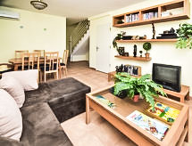 "Dunasol", 6-rums-radhus med 3 våningar. Vackert och smakfullt inrett: vardags-/matrum med digital-TV, luftkonditionering och varmluftsuppvärmning. Utgång till terrassen. 1 rum med 1 fransk säng, luftkonditionering och varmluftsuppvärmning. 1 rum med 1 x 2 våningssängar, luftkonditionering och varmluftsuppvärmning. 1 rum med 1 säng, luftkonditionering och varmluftsuppvärmning. Kök (ugn, diskmaskin, 4 kokplattor - glaskeramikhäll, mikrovågsugn, frys). Utgång till loggian. Badkar/toalett, dusch/toalett. Nedre våning: 1 rum med 1 fransk säng och dusch/toalett. Utgång till swimmingpoolen. Öppet kök (ugn, 4 kokplattor - glaskeramikhäll) med 1 bäddsoffa. Panoramautsikt. Till förfogande: tvättmaskin. Internet (Trådlös LAN [WLAN] , gratis). 1 husdjur/hund tillåtet. R000000001- Kännetecken för boendet