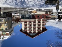 "Apt. A /425", 2-rums-lägenhet 70 m2 på 4. våningen. Delvis sluttande tak, komfortabelt och mysigt inredd: vardags-/matrum med 2 väggsängar (90 cm, längd 200 cm), kabel-TV, flatscreen TV, radio, CD och DVD. 1 rum med 2 sängar (90 cm, längd 200 cm). Kök (3 kokplattor, ugn, brödrost, vattenkokare, mikrovågsugn, elektrisk kaffemaskin, Kapslar till kaffemaskin (Nespresso) extra, fondueset (ost )). Sep. Toalett, badkar/dusch/toalett. Balkong. Balkongmöbler. Mycket vacker panoramautsikt på bergen. Till förfogande: hårtork. Internet (Trådlös LAN [WLAN] , gratis). Notera: lämpligt för barnfamiljer. Rökfri lägenhet.- Kännetecken för boendet