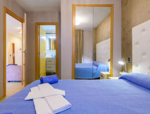 Marina d'Or: Komfortabelt flerfamiljshus "El Cano". I centrum av Marina d'Or, centralt, soligt läge, direkt vid havet, direkt vid stranden, gata att korsa. För gemensamt bruk: pool (30 x 15 m, 145 - 190 cm djup, tillgång säsongsbunden: 01.Jun. - 15.Sep.). Barnbassäng, utedusch. I huset: hiss. Allmän parkering på gatan. Livsmedelsaffär, stormarknad 100 m, restaurang, bar, café 50 m, sandstrand 10 m. Tonårsgrupper endast på förfrågan. Lugnt och tyst område. Tystnad och gott uppförande förväntas.Interior