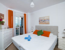 3-rums-lägenhet 60 m2 på 1. våningen. Praktiskt och komfortabelt inredd: vardags-/matrum med digital-TV. Utgång till balkongen. 1 rum med 1 dubbelsäng (2 x 90 cm, längd 200 cm). Utgång till balkongen. 1 rum med 2 sängar (90 cm, längd 200 cm). Kök (ugn, diskmaskin, 4 kokplattor - glaskeramikhäll, brödrost, vattenkokare, mikrovågsugn, frys, elektrisk kaffemaskin). Badkar/toalett, dusch/toalett. Luftkonditionering, varmluftsuppvärmning. Balkong 8 m2. Balkongmöbler. Utsikt på havet och hamnen. Till förfogande: tvättmaskin, strykjärn. Internet (Trådlös LAN [WLAN] , gratis). Notera: rökfri lägenhet. VFT/MA/07096- Kännetecken för boendet