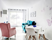 Stort flerfamiljshus "Elegance", med 4 våningar, byggnadsår 2006. I utkanten, 700 m från centrumet av Dénia, 500 m från havet. För gemensamt bruk: trädgård med gräsmatta, pool (tillgång säsongsbunden: 01.Jan. - 31.Dec.). Barnbassäng. I anläggningen: bastu, gym, lekrum, hiss (för gemensamt bruk). Trappor (15 trappsteg) till huset. Parkering. Affär 1 km, stormarknad 1 km, bar, busshållplats 400 m, sandstrand 500 m. Sporthamn 2 km, golfbana (18 hål) 8 km, tennis 500 m. Ägaren accepterar inga ungdomsgrupper.Interior