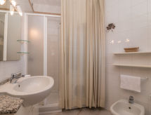 "Elicriso", 2-rums-lägenhet 55 m2 på 1. våningen. Praktiskt och vackert inredd: vardags-/sovrum med 1 bäddsoffa för 2 personer, matbord, sat-TV och luftkonditionering. Utgång till terrassen. 1 dubbelrum. Kök (ugn, diskmaskin, 4 gasflammor). Dusch/bidé/toalett. Luftkonditionering (extra). Stor balkong. Balkongmöbler. Utsikt på havet. Till förfogande: tvättmaskin, hög barnstol, barnsäng (extra), hårtork. Parkeringsplats (täckt). IUN:E2141- Utrustning