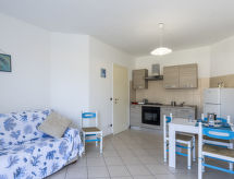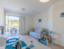 "Elide", 2-rums-lägenhet 60 m2 på 2. våningen. Ljus, praktiskt och modernt inredd: vardags-/matrum med 1 bäddsoffa för 2 personer (160 cm, längd 200 cm). Utgång till balkongen. 1 dubbelrum. Öppet kök (ugn, 4 gasflammor, brödrost, vattenkokare). Utgång till balkongen. Dusch/bidé/toalett. Gasuppvärmning. Uppvärmning endast tillgängligt från 15.10. till 30.04. Stor balkong 25 m2. Balkongmöbler. Utsikt på orten. Till förfogande: tvättmaskin. Internet (Trådlös LAN [WLAN] , gratis). 1 husdjur/hund tillåtet. CITRA:008059-LT-0400- Kännetecken för boendet