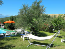 Lantgård "Villa Elster", omgiven av träd och fält. 7 lägenheter i residenset. 1 km från centrumet av Collecorvino, 15 km från centrumet av Città San Angelo, 20 km från centrumet av Pescara, i en sluttning, 20 km från havet. För gemensamt bruk: tomt 4'000 m2 (inhägnad), trädgård med gräsmatta och planteringar, pool (10 x 5 m, 130 cm djup, tillgång säsongsbunden: 01.Jun. - 30.Sep.) med salt-elektrolys. Utedusch, trädgårdsmöbler, utegrill. I huset: tvättmaskin (för gemensamt bruk, extra). Parkering på tomten. Affär 1 km, busshållplats 150 m, sandstrand "Montesilvano" 20 km. Lokal försäljning av lantgårdsprodukter. Ägaren bor i separat del av huset.Interior