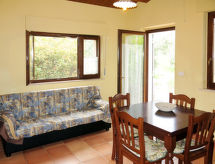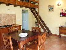 "Elster (COV100)", 2-rums-lägenhet 55 m2, på bottenvåningen. Objekt passande för 2 vuxna + 3 barn. Praktiskt inredd: vardags-/matrum med matbord och sat-TV. Utgång till terrassen. Galleri med 2 sängar. 1 rum med 1 säng och 1 fransk säng (160 cm). Öppet kök (4 kokplattor, elektrisk kaffemaskin). Badkar/toalett. Gasuppvärmning. Terrass. Terrassmöbler. Till förfogande: kassaskåp. Internet (Trådlös LAN [WLAN] , gratis). Notera: max 1 husdjur/hund tillåtet. Privat entré, privat entré. CIR: 06801CTY0002- Utrustning