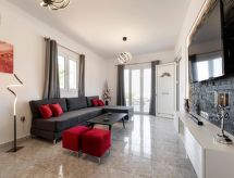 Vacker, komfortabel villa "Elysian", fristående, omgiven av fält. I ortsdelen Afandou, lugnt, soligt läge, 300 m från havet, 300 m från stranden. För privat bruk: vacker, välskött trädgård med blommor och träd, gräsplan, pool kantig (49 m2, 70 - 150 cm djup, tillgång säsongsbunden: 01.Apr. - 30.Nov.) med innertrappor. Parkering vid huset. Livsmedelsaffär 2 km, stormarknad 2 km, restaurang 2 km, bar 2 km, bageri 2 km, café 2 km, sandstrand "Afandou" 300 m. Golfbana (18 hål) 1.5 km, ridstall 8.4 km. Närbelägna sevärdheter: Valley of the Butterflies 19.4 km, Bee Museum of Rhodes 14.3 km, Lindos Acropolis 31 km, Asklipio Castle 43.7 km, Palace of the Grand Master of Knights 21.3 km, Waterpark Rhodes 10.7 km. Notera: fordon rekommenderas. Lämplig för barnfamiljer, babyutrustning på förfrågan (inkl.). Tonårsgrupper endast på förfrågan.Interior