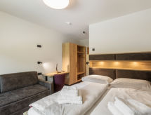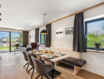 Kaprun: Modernt, komfortabelt flerfamiljshus "Emma Deluxe Aparthotel", med 3 våningar. 16 lägenheter i residenset. I ortsdelen Fürth 2.5 km från centrumet av Kaprun, utmärkt läge: mitt i centrum men ändå lugnt. För gemensamt bruk: pool uppvärmd (9 x 4 m, 130 cm djup, tillgång säsongsbunden: 01.Jan. - 31.Dec.). I huset: reception, restaurang, bar, frukostrum, bastu, ångbad, rum för avkoppling, spa-område, cykelförråd, skidförråd, centralvärme, tvättmaskin, torktumlare (för gemensamt bruk), tork för pjäxor. Frukost (inkl.). Vänligen använd snökedjor under vintern. Parkering vid huset. Laddstation för elbil. Stormarknad 2 km, busshållplats "nach Kaprun und Zell am See" 50 m, järnvägsstation "Zell am See" 7 km, bad med varma källor "Tauern Spa Kaprun" 1.3 km, badsjö "Zeller See" 7 km. Golfbana (36 hål) 3 km, kabinlift 2.6 km, skidspår 500 m. Välkända skiddestinationer nås enkelt: Schmittenhöhe 4 km, Maiskogel- Kitzsteinhorn 2.5 km. Notera: gratis skidbuss. Gratis skidbuss till skidområdet Kaprun und Zell am See. Bilden är bara ett exempel på en lägenhet.Interior