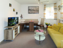Prutz: 3-familjshus 870 meter över havsytan. I ortsdelen Endbruck 1 km från centrumet av Prutz, 14 km från centrumet av Landeck, soligt läge i en sluttning, i en återvändsgränd. För gemensamt bruk: tomt 400 m2, trädgård i olika nivåer (inte inhängnad) med gräsmatta. I huset: skidförråd. Parkering på tomten. Affär 1 km, stormarknad 1.5 km, järnvägsstation "Landeck" 15 km, utomhusbad 2.5 km, simhall 13 km, badsjö "Ried" 5 km. Golfbana (9 hål) 58 km, vandringsleder från huset 50 m, bergbana 2 km, skidlift 2 km, skidbackar 2 km, skidbusshållplats 700 m, skidskola 2 km. Välkända skiddestinationer nås enkelt: Kaunertaler Gletscher 40 km, Fiss/Serfaus 10 km, Fendels 2 km. Vandringsområden Ladis 7 km. Notera: gratis skidbuss. Gratis skidbuss till skidområdet Fiss/Serfaus. Notera: ägaren bor i samma hus.Interior