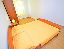 3-rums-lägenhet 75 m2 på 1. våningen, sydläge. Vardags-/matrum 24 m2 med 1 bäddsoffa för 2 personer (190 cm, längd 200 cm), sat-TV (flatscreen TV), luftkonditionering. Utgång till balkongen. 2 rum, till varje rum hör, 1 fransk säng (160 cm, längd 200 cm). Öppet kök (4 kokplattor, ugn, mikrovågsugn, frys, elektrisk kaffemaskin). 2 duschar/toaletter. Luftkonditionering, varmluftsuppvärmning (extra). Balkong 10 m2. Balkongmöbler. Begränsad utsikt på havet. Till förfogande: tvättmaskin. Internet (Trådlös LAN [WLAN] , gratis). 1 husdjur/hund tillåtet.- Utrustning