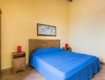 "Erica", 2-rums-lägenhet 40 m2 på 1. våningen. Enkelt och praktiskt inredd: matrum med sat-TV. Utgång till terrassen. 1 dubbelrum. Kokvrå (4 kokplattor, miniugn, vattenkokare, frys). Dusch/bidé/toalett. Terrass 25 m2. Terrassmöbler. Panoramautsikt på landskapet. Till förfogande: hög barnstol, barnsäng för barn under 2 år. Internet (Trådlös LAN [WLAN] , gratis). 1 husdjur/hund tillåtet.- Kännetecken för boendet