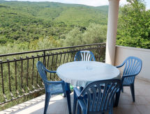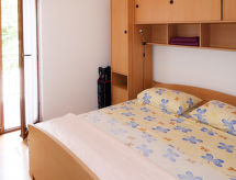 "Ester (LBN136)", 4-rums-lägenhet 55 m2 med 2 våningar på 1. våningen. Vardags-/matrum med sat-TV (flatscreen TV), luftkonditionering. Utgång till balkongen. 1 rum med 1 dubbelsäng. Utgång till balkongen. 1 rum med 1 dubbelsäng. Öppet kök (1 kokplatta, ugn, 3 gasflammor, brödrost, frys, elektrisk kaffemaskin). Dusch/toalett. Takvåning: (brant trappa) 1 rum med snedtak, - 180 cm med 1 säng. Balkong 12 m2. Balkongmöbler, utegrill (flyttbar). Utsikt på havet. Till förfogande: Internet (Trådlös LAN [WLAN] , gratis). Notera: rökfritt hus. Max 1 husdjur/hund tillåtet.- Utrustning