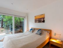 Carreyre 7 km från Lacanau Ocean: I ortsdelen Moutchic, lugnt läge, 10 m från skogsbrynet, 7 km från havet, 100 m från sjön, direkt tillgång till stranden, i skogen. För gemensamt bruk: trädgård 2'000 m2 (inhägnad), naturtomt, parkering. Livsmedelsaffär 7 km, restaurang 2 km, café 2 km, sandstrand "Centrale Lacanau" 7 km, badsjö "Le moutchic" 100 m. Golfbana (18 hål) 4 km, ridstall 8 km. Närbelägna sevärdheter: Bordeaux 60 km, Cap ferret 80 km, Dune du Pilat 80 km, Saint Emilion 80 km. Välkända sjöar nås enkelt: Le moutchic 100 m, Maubuisson 15 km. Ägaren accepterar inga grupper. Notera: ägaren bor på samma tomt.Interior