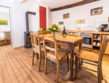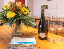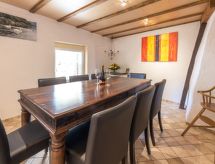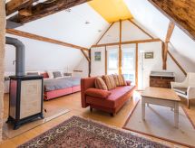 "Eulenhaus", 5-rums-radhus 170 m2 med 3 våningar, på bottenvåningen. Mysigt inrett: matrum 12 m2. 1 rum 18 m2 med 1 dubbelsäng (180 cm, längd 200 cm), sat-TV (flatscreen TV). Kök 12 m2 (ugn, diskmaskin, 4 kokplattor - glaskeramikhäll, brödrost, vattenkokare) med braskamin. Dusch/toalett. Övre våning: 1 rum 14 m2 med 1 dubbelsäng (180 cm, längd 200 cm), sat-TV (flatscreen TV). 1 rum 18 m2 med 1 dubbelsäng (180 cm, längd 200 cm), sat-TV (flatscreen TV). 2 duschar/toaletter. 2:a våningen vardags-/sovrum 50 m2, med snedtak med 1 dubbelsäng (180 cm, längd 200 cm), braskamin och sat-TV (flatscreen TV). Kokvrå (diskmaskin, 4 kokplattor - glaskeramikhäll, brödrost, vattenkokare, mikrovågsugn, elektrisk kaffemaskin). Dusch/toalett. Balkong 7 m2, terrass 15 m2. Terrassmöbler, balkongmöbler. Till förfogande: hårtork, ved (extra). Internet (Trådlös LAN [WLAN] , gratis). Notera: rökfritt hus. 1 husdjur/hund tillåtet. Brandvarnare.- Utrustning
