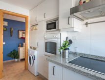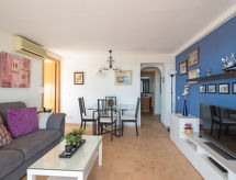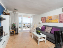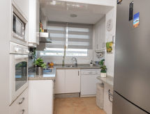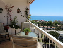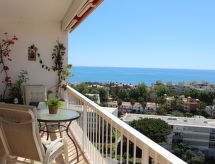 "Eurosol", 3-rums-takvåning 89 m2 på 8. våningen. Objekt passande för 4 vuxna + 2 barn. Praktiskt och komfortabelt inredd: vardags-/matrum med digital-TV, luftkonditionering och varmluftsuppvärmning. Utgång till terrassen. 1 dubbelrum med 1 säng (90 cm), 1 fransk säng (135 cm), luftkonditionering och varmluftsuppvärmning. 1 dubbelrum med 1 fransk säng (135 cm), 1 hopfällbar säng (90 cm), luftkonditionering och varmluftsuppvärmning. Kök (ugn, diskmaskin, 4 kokplattor - glaskeramikhäll, brödrost, vattenkokare, mikrovågsugn, frys, elektrisk kaffemaskin). 2 duschar/toaletter. Terrass 14 m2. Terrassmöbler. Härlig utsikt på havet. Till förfogande: tvättmaskin, strykjärn, hårtork. Internet (Trådlös LAN [WLAN] ). VFT/MA/28853- Utrustning