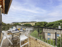 2-rums-lägenhet 40 m2 på 3. våningen. Praktiskt och komfortabelt inredd: vardags-/matrum med panoramafönster med 1 bäddsoffa för 2 personer (140 cm, längd 190 cm), TV (flatscreen TV), luftkonditionering och elektrisk fönsterlucka. Utgång till balkongen. 1 rum med 1 fransk säng (140 cm, längd 190 cm), elektriskt värmeelement. Kök (ugn, diskmaskin, 2 Induktionshäll, brödrost, vattenkokare, frys, elektrisk kaffemaskin, kombinerad mikrovågsugn). Badkar, sep. Toalett. Stor balkong 12 m2, sydläge och västläge. Balkongmöbler, vilstolar (1). Vacker utsikt på trädgården och landskapet. Till förfogande: tvättmaskin, strykjärn, hårtork. Internet (Trådlös LAN [WLAN] , extra). Parkeringsplats nr 308 (inhägnad). Notera: brandvarnare.- Kännetecken för boendet