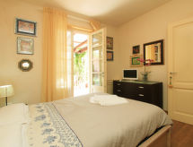 "Faroo", 7-rums-villa 330 m2. Rymlig och ljus, mycket komfortabelt och smakfullt inredd: öppet stort vardags-/matrum med öppen spis (endast för dekoration), matbord och TV (flatscreen TV), luftkonditionering. Utgång till trädgården, till verandan. 1 dubbelrum med luftkonditionering. Utgång till trädgården, till verandan. 1 rum med 1 x 2 våningssängar, luftkonditionering. Kök (4 kokplattor, ugn, diskmaskin, brödrost, vattenkokare, mikrovågsugn, frys, elektrisk kaffemaskin). Utgång till trädgården, till verandan. Dusch/bidé/toalett. Gasuppvärmning. Uppvärmning endast tillgängligt från 01.11. till 15.04. Nedre våning: stort vardags-/matrum med matbord och TV (flatscreen TV), luftkonditionering. 1 stort dubbelrum med luftkonditionering. 1 rum med 1 x 2 våningssängar, luftkonditionering. Dusch/bidé/toalett. Övre våning: 1 stort dubbelrum med öppen spis (endast för dekoration), TV (flatscreen TV), luftkonditionering. Stor genomgångsrum med 1 dubbelsäng och luftkonditionering. Badkar/bidé/toalett, bubbelbad. Terrassmöbler, sittgrupp. Vacker utsikt på trädgården. Till förfogande: tvättmaskin, torktumlare, strykjärn, hårtork. Internet (Trådlös LAN [WLAN] , gratis). Parkeringsplats (inhägnad, 7 Bilar).- Kännetecken för boendet