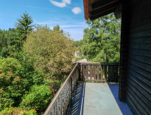 3-rums-lägenhet 70 m2, på övervåningen. Mysigt och med mycket trä inredd: vardagsrum 34 m2 med sat-TV (flatscreen TV), CD, stereoanläggning och DVD. Utgång till balkongen. 1 rum 12 m2 med 1 dubbelsäng (200 cm, längd 200 cm). 1 rum 10 m2 med 2 sängar (100 cm, längd 200 cm). Öppet kök (ugn, diskmaskin, 3 kokplattor - glaskeramikhäll, brödrost, vattenkokare, mikrovågsugn, elektrisk kaffemaskin) med matbord. Dusch/toalett. Gasuppvärmning. Stor balkong 20 m2. Balkongmöbler. Vacker utsikt på bergen, orten och skogen. Till förfogande: Internet (Trådlös LAN [WLAN] , gratis). Parkeringsplats i 10 m. Notera: rökfri lägenhet. Privat entré, privat entré, brandvarnare.- Utrustning