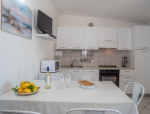 4-rums-hus 70 m2. Komfortabelt inrett: vardags-/matrum med TV. Utgång till trädgårdssittplatsen. 1 dubbelrum. 2 rum, till varje rum hör 2 sängar. Kokvrå (4 kokplattor, ugn, mikrovågsugn, frys). Dusch/bidé/toalett. Trädgårdssittplats täckt. Terrassmöbler, utegrill. Vacker utsikt på havet. Till förfogande: tvättmaskin, hårtork. IUN:Q2984- Utrustning