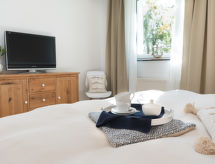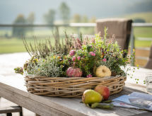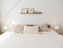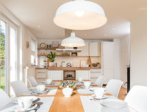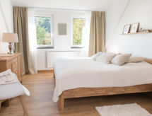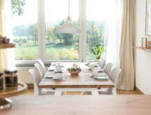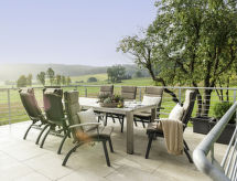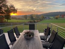 5-rums-hus 150 m2 med 2 våningar. Fullständigt renoverat år 2022, mycket smakfullt och mysigt inrett: vardags-/matrum med braskamin, sat-TV, flatscreen TV, stereoanläggning och DVD. Utgång till terrassen. 1 rum med 1 dubbelsäng. Öppet kök (ugn, diskmaskin, 10 Induktionshäll, brödrost, vattenkokare, elektrisk kaffemaskin, köksö). Dusch/toalett. Nedre våning: med handfat och sep. toalett. Utgång till trädgården. Övre våning: 1 rum med 2 sängar. 1 rum med 1 dubbelsäng. 1 rum med 1 dubbelsäng. Badkar/dusch/toalett. Terrass 25 m2. Terrassmöbler, utegrill, vilstolar (2). Mycket vacker utsikt på landskapet. Till förfogande: tvättmaskin, torktumlare, strykjärn, barnsäng, hårtork. Internet (Trådlös LAN [WLAN] , gratis). Parkeringsplats vid huset. Notera: rökfritt hus. Max 2 husdjur/hundar tillåtna. Brandvarnare, brandsläckare.- Utrustning
