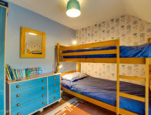 4-rums-stuga med 2 våningar. Komfortabelt och mysigt: vardagsrum med TV (flatscreen TV), CD, DVD och vedugn. Matrum med kamin. Litet kök (4 kokplattor, ugn). Utgång till trädgården. Övre våning: 1 rum med 1 dubbelsäng. 1 rum med 1 x 2 våningssängar. Badkar/dusch/toalett. Eluppvärmning. Trädgård. Terrassmöbler. Utsikt på landskapet. Notera: rökfritt hus.- Kännetecken för boendet