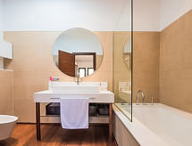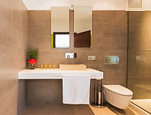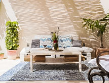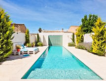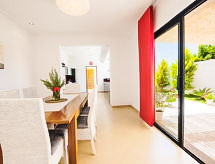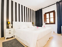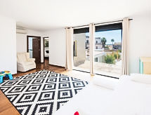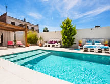Sant Joan: Mycket stort, modernt, vackert hus "Fullness Mallorca", med 2 våningar, renoverat. I orten, 280 m, lugnt, soligt läge, 1 km från skogsbrynet, 27 km från havet, 27 km från stranden. För privat bruk: vacker trädgård med planteringar, pool kantig (12 x 3 m, 140 - 200 cm djup, tillgång säsongsbunden: 01.Jan. - 31.Dec.) med salt-elektrolys. Dusch/toalett i poolområdet, bubbelbad, poolhus med kylskåp och spis, sittplats, berså, pergola, trädgårdsmöbler, utegrill. I huset: Trådlös LAN [WLAN], centralvärme, luftkonditionering, tvättmaskin, torktumlare. Parkering (täckt) vid huset. Affär, stormarknad, restaurang 300 m, bar 250 m, bageri 300 m, …minuts promenad till centrum 2, busshållplats 400 m, sandstrand 27 km, strand vid klippor 28 km. Sporthamn 27 km, golfbana (18 hål) 22 km. Notera: lämplig för barnfamiljer, passande för äldre. Objekt passande för 6 vuxna tonårsgrupper endast på förfrågan. Av- och pålastning av bagage är möjligt vid semesterbostaden. Flygplats 37 km från huset.Interior