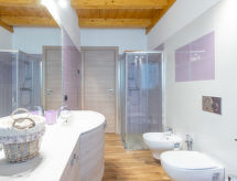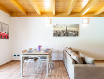 Modernt radhus "Gelsomini", byggnadsår 2016. I ortsdelen Curcio 2 km från centrumet av Colico, 42 km från centrumet av Lecco, 72 km från centrumet av Como, i ett bostadsområde, 2 km från sjön. För gemensamt bruk: tomt 1'000 m2 (inhägnad) med äng, pool (8 x 4 m, 145 cm djup, tillgång säsongsbunden: 30.Apr. - 30.Sep.) med salt-elektrolys. Utedusch, utegrill, parkering vid huset på 50 m avstånd, allmän parkering 100 m. Affär 400 m, stormarknad 700 m, järnvägsstation "Colico" 1.6 km, grusstrand 2.7 km, grässtrand 2.7 km. Golfbana (18 hål) 35.5 km. Notera: I denna anläggning finns att hyra ytterligare 2 hus till uthyrning.Interior
