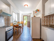 "Germana", 3-rums-lägenhet 60 m2, på bottenvåningen. Praktiskt inredd: genomgångsrum med 1 säng (80 cm). 2 dubbelrum (160 cm). Kök (ugn, Gasspis, 4 gasflammor, brödrost, frys, elektrisk kaffemaskin) med matbord och TV. Utgång till trädgården. Badkar/bidé/toalett. Gasuppvärmning. Liten trädgård. Terrassmöbler, utegrill (flyttbar). Notera: max 2 husdjur/hundar tillåtna. Privat entré, privat entré. CIR: 10301400003- Utrustning