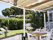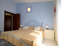 6-rums-villa 150 m2 med 2 våningar. Enkelt och praktiskt inredd: vardags-/matrum med sat-TV (flatscreen TV). Utgång till trädgårdssittplatsen. 1 dubbelrum med luftkonditionering. 1 rum med 2 sängar. Litet kök (4 kokplattor, ugn, brödrost, vattenkokare, mikrovågsugn, frys). Utgång till trädgården, till trädgårdssittplatsen. Dusch/bidé/toalett. Övre våning: (utetrappa) vardags-/matrum med TV (flatscreen TV). Utgång till balkongen. 1 dubbelrum med luftkonditionering. Utgång till balkongen. 1 rum med 2 sängar. Utgång till balkongen. Kök (4 kokplattor, miniugn, brödrost, vattenkokare, mikrovågsugn, frys) med matbord. Utgång till trädgårdssittplatsen. Badkar/bidé/toalett. Vattenberedare (50 liter). Terrass 20 m2, täckt, liten trädgårdssittplats 5 m2, täckt. Terrassmöbler. Till förfogande: tvättmaskin, strykjärn, barnsäng för barn under 2 år, hårtork. Internet (Trådlös LAN [WLAN] , gratis). Parkeringsplats (2 Bilar). Ingen intern dörr mellan våningarna.- Kännetecken för boendet
