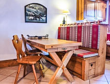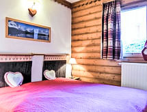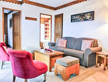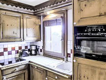 3-rums-lägenhet 48 m2, på bottenvåningen. Vardags-/matrum med TV. Utgång till balkongen. 1 rum med 1 fransk säng (160 cm, längd 190 cm), dusch. Utgång till balkongen. 1 rum med 2 sängar (80 cm, längd 190 cm). Kokvrå (diskmaskin, 4 kokplattor - glaskeramikhäll, vattenkokare, elektrisk kaffemaskin, kombinerad mikrovågsugn). Badkar, sep. Toalett. 2 balkonger, sydläge och sydvästläge. Balkongmöbler. Mycket vacker utsikt på bergen. Till förfogande: Internet (Trådlös LAN [WLAN] , gratis). Notera: TV bara FR. Brandvarnare.- Kännetecken för boendet