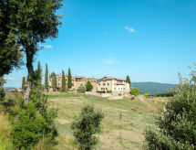 Stor, mysig, historisk bondgård "Il Santo", från 1400-talet, omgiven av träd, ängar och fält. 20 lägenheter i residenset. 6 km från centrumet av Pari, avskilt, upphöjt läge på en kulle, 60 km från havet, i det gröna. För gemensamt bruk: tomt 56 ha, trädgård i olika nivåer med planteringar och träd, naturtomt, äng, pool (20 x 14 m, 40 - 150 cm djup, tillgång säsongsbunden: 01.Jun. - 30.Sep.). Oregelbundet formad pool. Dusch/toalett i poolområdet, utedusch, bordtennis, trädgårdsmöbler, utegrill. I anläggningen: reception, biljard, tvättmaskin (för gemensamt bruk, extra), uppvärmning endast tillgängligt från 08.11. till 08.04.. Parkering på tomten. Affär 6 km, livsmedelsaffär 5 km, stormarknad 15 km, restaurang 2 km, sandstrand "Marina di Grosseto" 65 km, bad med varma källor "Petriolo" 2 km. Ridstall 10 km, vandringsleder från huset 50 m. Närbelägna sevärdheter: Montalcino 34 km, Siena 30 km, Monte Amiata 68 km. Lokal försäljning av lantgårdsprodukter. Notera: djur i området. Plikt att bära badmössa.Interior
