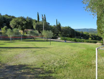 "Ginestre 2", 2-rums-radhus 40 m2 med 2 våningar, på bottenvåningen över marknivå. Enkelt och rustikt inrett: vardags-/sovrum med 1 säng (80 cm), 1 bäddsoffa och matbord. Utgång till trädgården. Kokvrå (2 gasflammor, vattenkokare). Övre våning: 1 rum med 1 fransk säng (140 cm). Dusch/bidé/toalett. Gasuppvärmning. Trädgårdssittplats delvis täckt. Terrassmöbler. Vacker utsikt på landskapet. Till förfogande: hög barnstol, barnsäng. Notera: max 2 husdjur/hundar tillåtna. Privat entré, privat entré.- Utrustning