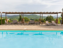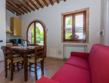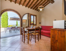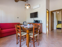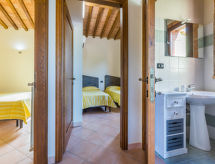 Semesteranläggning "Girasole". 5 lägenheter i residenset. 8 km från centrumet av Montecatini Val di Cecina, 2 km från centrumet av Ponteginori, 6 km från centrumet av Saline di Volterra, på en kulle, 27 km från havet. För gemensamt bruk: tomt 2 ha (inhägnad), välskött trädgård i olika nivåer gräsmatta och träd, pool (12 x 6 m, 150 - 150 cm djup, tillgång säsongsbunden: 15.Maj. - 30.Sep.). Utedusch, utegrill. Byte av sängkläder (i tillägg). Byte av handdukar i tillägg. Parkering på tomten. Stormarknad 2 km, restaurang 800 m, bageri 2 km, järnvägsstation "Ponteginori" 2.5 km, sandstrand "Marina di Cecina" 27 km, simhall 24 km. Närbelägna sevärdheter: San Gimignano 45 km, Pisa 75 km, Firenze 100 km.Interior