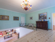 Mycket vacker, komfortabel villa "Giulia", med 2 våningar, fristående, byggnadsår 1960, renoverad år 2004. I orten 10 km från centrumet av Rome, i distriktet Aurelio, soligt läge villaområde, 20 km från havet, 20 km från stranden. För privat bruk: stor, vacker, välskött trädgård 8'000 m2 (inhägnad) med blommor och träd, pool (22 x 8 m, 150 - 350 cm djup, tillgång säsongsbunden: 01.Apr. - 30.Okt.). Oregelbundet formad pool. Sittplats, pergola, terrass (150 m2), trädgårdsmöbler. Hushållshjälp dagligen möjligt. Parkering (för 3 bilar, täckt) vid huset. Stormarknad, restaurang, bar 500 m, busshållplats "Casale Lumbroso/Severi 906-088" 20 m, park "Hydromania Water Park" 1.2 km. Närbelägna sevärdheter: Fiumicino airport 15 km, Vatican City 10 km, Piazza Navona, Piazza di Spagna, Colosseo, Fori imperiali 13 km. Notera: fordon rekommenderas. Tonårsgrupper endast på förfrågan. Djur i området.Interior