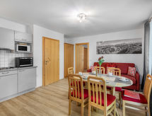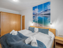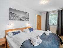 "Top 3", 3-rums-lägenhet 60 m2 på 1. våningen. Ljus, enkelt och modernt inredd: 2 dubbelrum. Kombinerat kök och vardagsrum (4 kokplattor, miniugn, diskmaskin, brödrost, vattenkokare, mikrovågsugn, elektrisk kaffemaskin) med 1 bäddsoffa för 2 personer (160 cm, längd 200 cm), matbord, kabel-TV och flatscreen TV. Utgång till balkongen. Badkar/dusch, sep. Toalett. Balkong. Balkongmöbler. Vidsträckt utsikt på bergen och landskapet. Till förfogande: hårtork. Internet (Trådlös LAN [WLAN] , gratis). Notera: rökfri lägenhet. 50625-002294-2020- Kännetecken för boendet