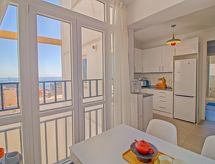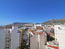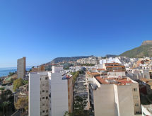 "Glorieta", 3-rums-lägenhet 80 m2 på 8. våningen. Rymlig och ljus, praktiskt och komfortabelt inredd: vardags-/matrum med digital-TV. 2 rum, till varje rum hör, 1 fransk säng. Kök (ugn, 4 gasflammor, brödrost, vattenkokare, mikrovågsugn, elektrisk kaffemaskin). Dusch/toalett. Ingen uppvärmningsmöjlighet. Vidsträckt utsikt på havet och staden. Till förfogande: tvättmaskin, strykjärn, hårtork. Internet (Trådlös LAN [WLAN] , gratis). R000000001- Utrustning