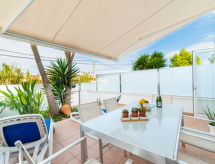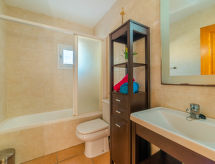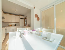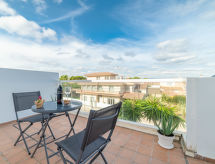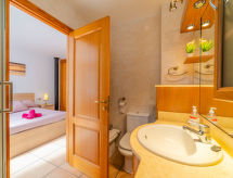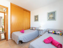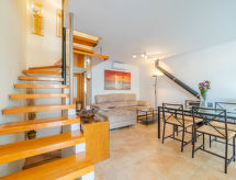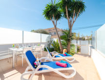 Can Picafort: Vackert, mysigt radhus "Golf", med 3 våningar, tillbyggt. I orten, 900 m, lugnt, soligt läge, 50 m från skogsbrynet, 300 m från havet, 300 m från stranden. För privat bruk: liten trädgård med gräsmatta och planteringar. Sittplats, berså, trädgårdsmöbler, utegrill. I huset: internetanslutning, Trådlös LAN [WLAN], luftkonditionering, tvättmaskin. Allmänt parkeringshus, allmän parkering på gatan. Affär 400 m, livsmedelsaffär, stormarknad 300 m, restaurang, bar 200 m, bageri, café, område endast för gående 300 m, …minuts promenad till centrum 3, busshållplats 200 m, sandstrand 300 m, strand vid klippor 350 m. Sporthamn, marina 350 m, golfbana (18 hål) 11 km, ridstall 100 m. Notera: lämplig för barnfamiljer, passande för äldre. Objekt passande för 6 vuxna tonårsgrupper endast på förfrågan. Flygplats 50 km från huset.Interior