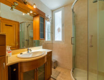 "Golf", 4-rums-radhus 150 m2 med 3 våningar. Objekt passande för 6 vuxna. Mycket praktiskt och komfortabelt inrett: vardags-/matrum med panoramafönster med öppen spis, matbord, sat-TV, digital-TV, flatscreen TV, luftkonditionering och varmluftsuppvärmning. Utgång till trädgårdssittplatsen. Kök (diskmaskin, 3 kokplattor - glaskeramikhäll, mikrovågsugn, frys, elektrisk kaffemaskin) med matbord. Sep. Toalett. Övre våning: 1 stort dubbelrum med panoramafönster med 1 dubbelsäng (150 cm, längd 200 cm), dusch/toalett och vedugn. 1 stort dubbelrum med panoramafönster med 2 sängar (90 cm). Mellanplan med luftkonditionering och varmluftsuppvärmning. Badkar/toalett. 2:a våningen 1 dubbelrum med panoramafönster med 1 fransk säng (150 cm, längd 200 cm), fläkt. Utgång till balkongen, till terrassen. 2 stora terrasser, trädgårdssittplats, gräsmatta. Terrassmöbler, balkongmöbler, utegrill, vilstolar (2). Utsikt på orten och skogen. Till förfogande: tvättmaskin, strykjärn, hög barnstol, barnsäng, hårtork. Internet (Trådlös LAN [WLAN] , gratis). Lämpligt för barnfamiljer. ETVL12580- Aktiviteter i närheten