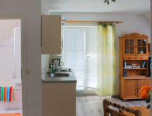 Mysig stugby "Gollwitzer Park (Insel Poel)", omgiven av träd, ängar och fält. I utkanten, lugnt, soligt läge, 600 m från havet, 600 m från stranden, i en återvändsgränd, i det gröna. För gemensamt bruk: tomt 12'000 m2 med gräsmatta, äng, gräsplan, naturlig damm. Bordtennis, boccia (extra), barnlekplats. I anläggningen: cykelförråd. Parkering på tomten. Livsmedelsaffär 5 km, stormarknad 5 km, köpcentrum 5 km, restaurang 200 m, bageri 5 km, busshållplats 100 m, sandstrand 600 m, utomhusbad 18 km, simhall 18 km, badsjö 18 km. Minigolf 6.5 km, ridstall 7.5 km, vandringsleder från huset 100 m. Notera: fordon rekommenderas.Interior